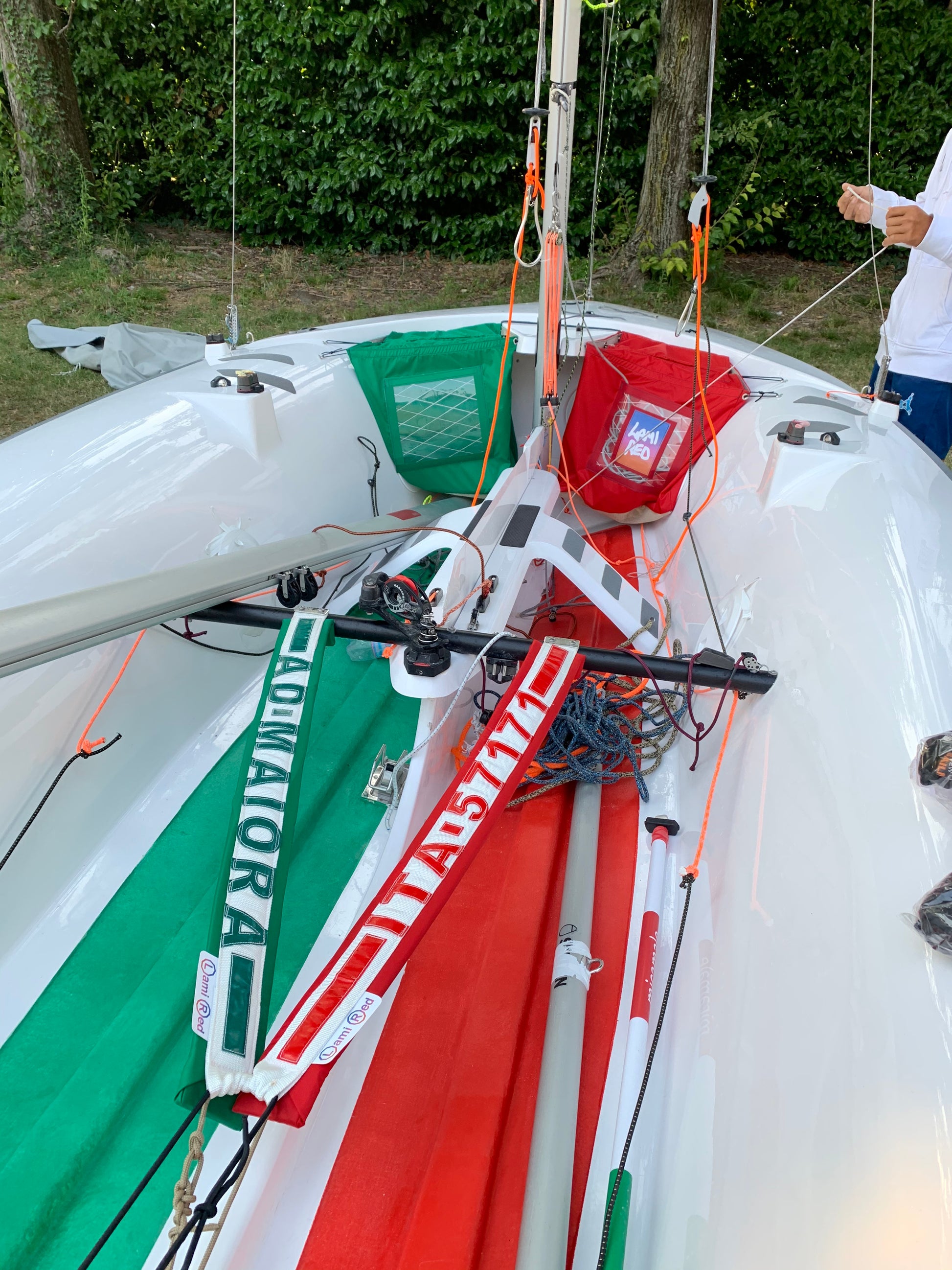Class rules on hull weight measurement are very strict, you can adjust the weight of your hull changing hiking straps, since they are screwed to the hull they will be weighted together.