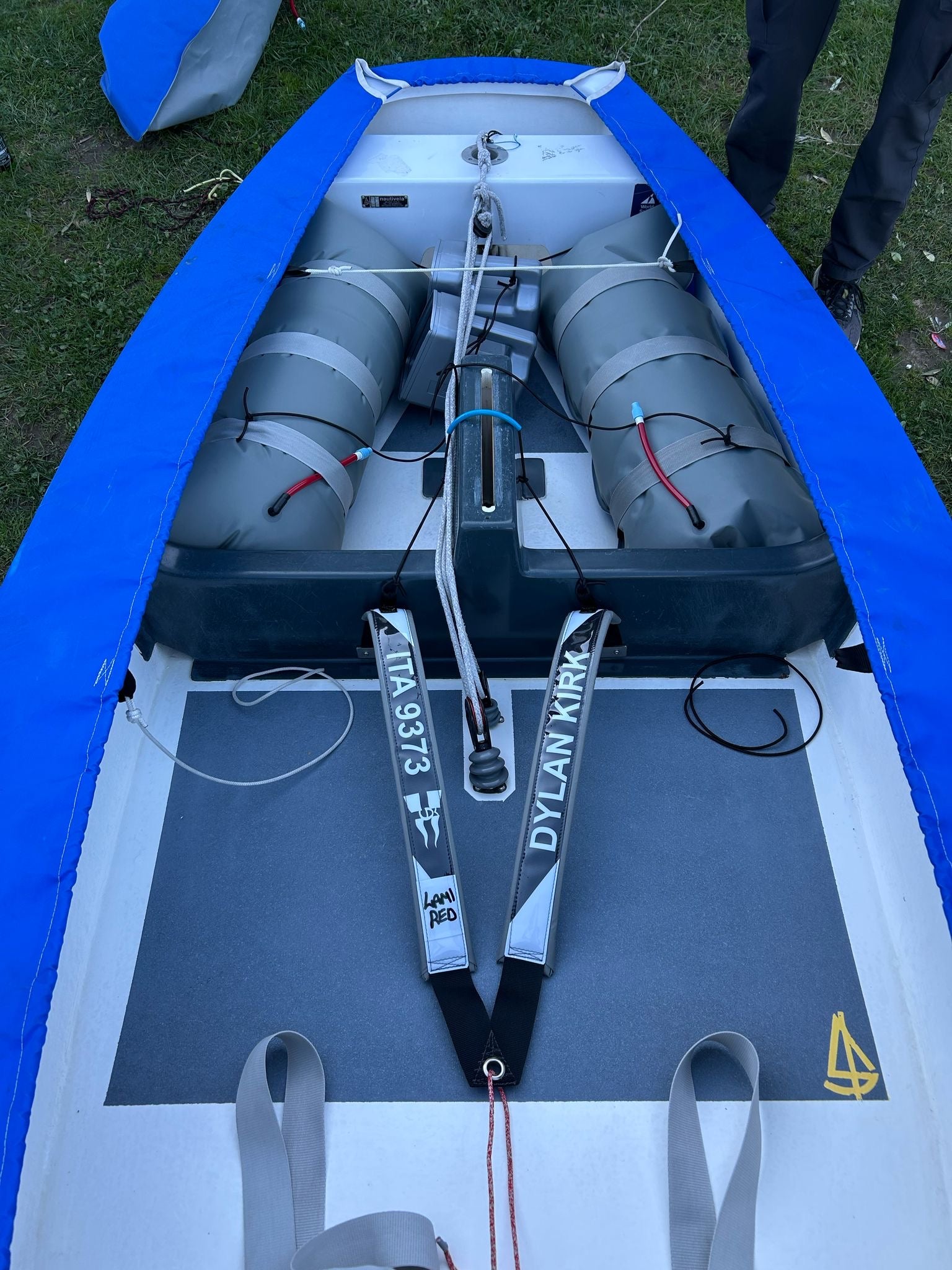 Class rules on hull weight measurement are very strict, you can adjust the weight of your hull changing hiking straps, since they are screwed to the hull they will be weighted together.